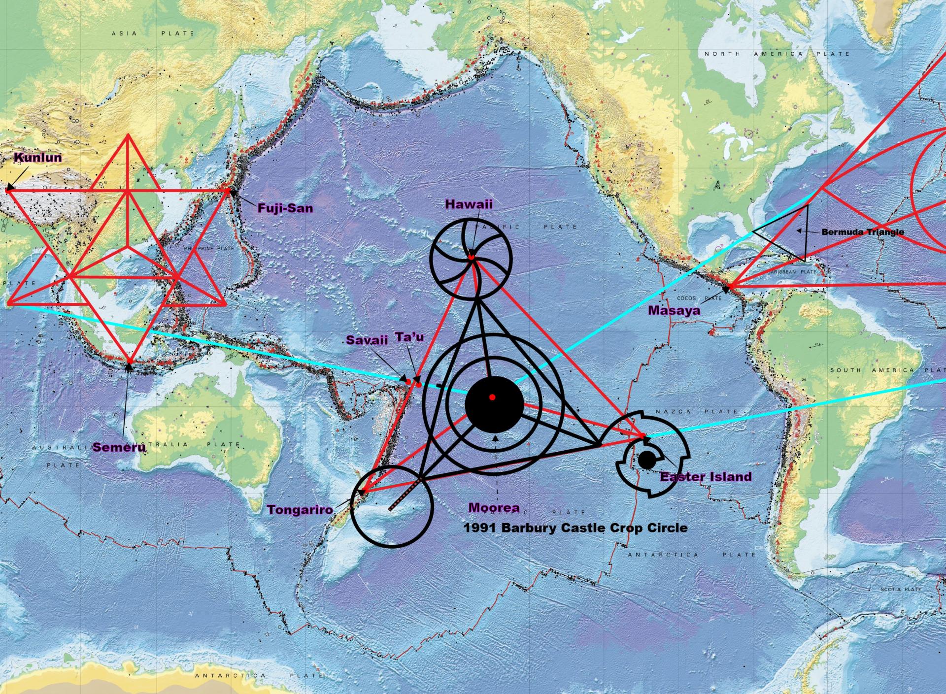 Bottom Right: A glimpse into the Molten Roots research of hotspots and volcano mythologies, and their connection with ancient cultures, consciousness grids, and Earth mysteries.