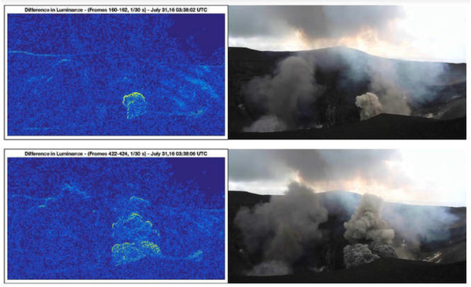 At UCSB, I was able to quantify volcanic shock waves using innovative digital imaging processing. Essentially "vIsible sound", these luminous flashing arcs were recorded on high-definition video during an international field campaign to Yasur volcano in Vanuatu, whose approachability and regularity of explosions make it an ideal location to study strombolian eruptive mechanisms. For this work, I developed codes using Matlab to process digital videos for luminance differencing and velocity profiles. Read more about the results of that expedition here.